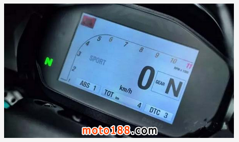 杜卡迪Monster 1200 R整車質量207kg,座位高度830mm,油箱17.5L。制動系統上,Monster 1200 R使用brembo M50單體四活塞卡鉗,330毫米雙碟前剎,48mm高規格ohlins前叉和ohlins后減震。新車同時具備運動、旅行和城市等騎行模式可供選擇,并具有TFT彩色顯示屏和碳纖維前翼子板。