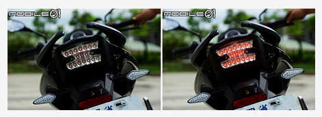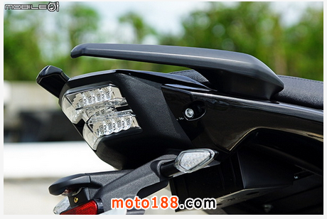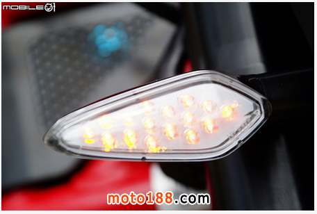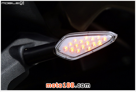 尾燈采用全 LED 發(fā)光二極管尾燈,煞車時為全尾燈亮度提高,發(fā)光二極管總共 17 顆,亮度在日間的表現(xiàn)可以參考照片,其實非常足夠,相信在夜間的亮度也能達到煞車時應有的警示效果。