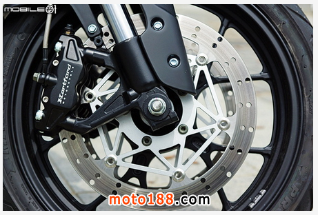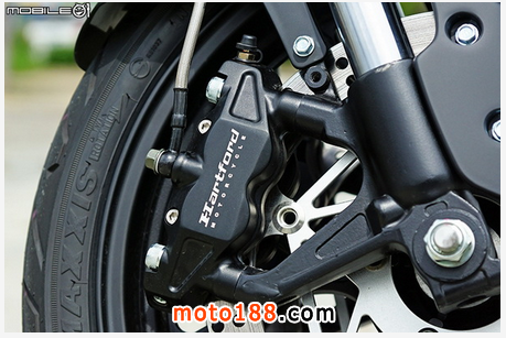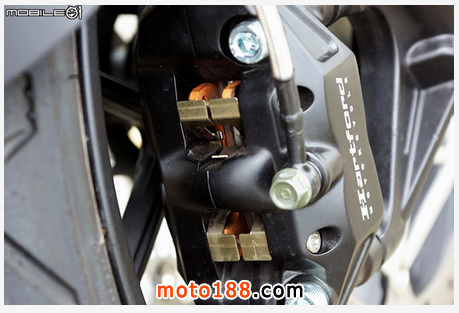 哈特佛這次在 Falcon 400 采用兩顆輻射固定式對向四活塞卡鉗,制動能力的確有到大車應有的水準,來令片采用雙插銷來令片,煞車來令片取得方面也不用太擔心,據(jù)了解為與知名改裝廠牌可以共享,所以不用太擔心耗材取得問題。