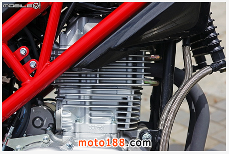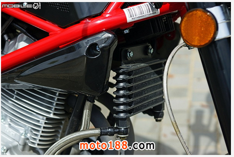 引擎前方可以看到機油冷卻器,面積雖然不是很大,但是在散熱方面還是能有效降低機油溫度,而且 Falcon 400 采用空油冷引擎,機油的溫度控管更為重要;另外可以發(fā)現(xiàn)到機油油冷排的管線走線有些奇特,最主要是因為哈特佛在 Falcon 400 上搭載目前不論國內(nèi)外檔車都非常少見的”干式油底殼”設計。