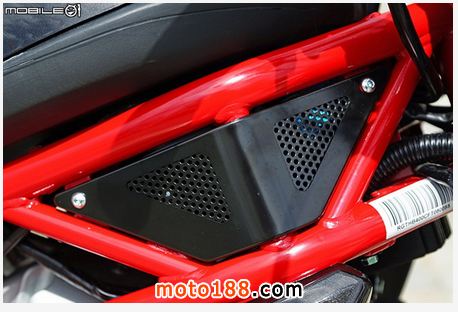 前座下方位置為空濾箱進氣口,不過雖說進氣口在這邊,但是空濾棉更換并不是從這邊打開,而是如同輕檔車大多設計,從車輛側(cè)蓋邊打開,才可以看到空濾棉。