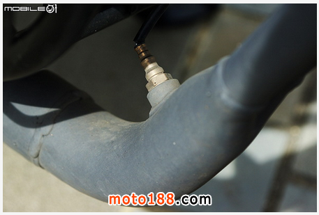 噴射系統(tǒng)的排氣管含氧感知器位于頭段下方轉(zhuǎn)軸處,排氣管也有設計一點膨脹室,讓排氣氣流能夠更順暢。