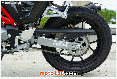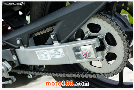 后齒盤為 520 規(guī)格,40 齒設計,因此要更換改裝鏈條的規(guī)格還算好找,后搖臂鏈條張緊調(diào)整也還算牢靠,在車輛代號方面是以 HB-400C 為稱。