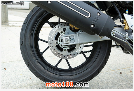 后輪一樣采用 MAXXIS 正新瑪吉斯的 PROMAXX STREET 輪胎,規(guī)格為 140/70-17 M/C 66H,胎紋可以參考右側(cè)。