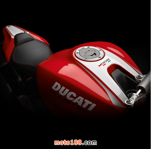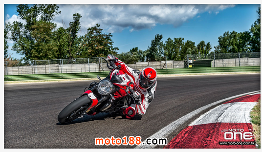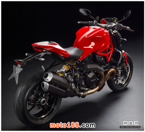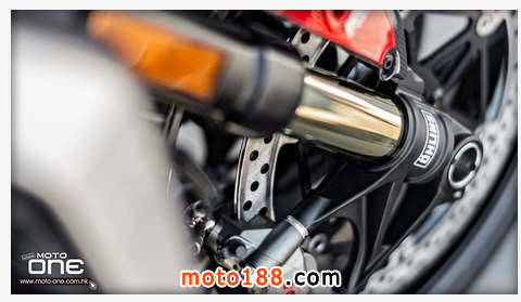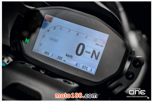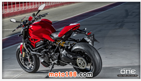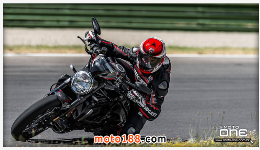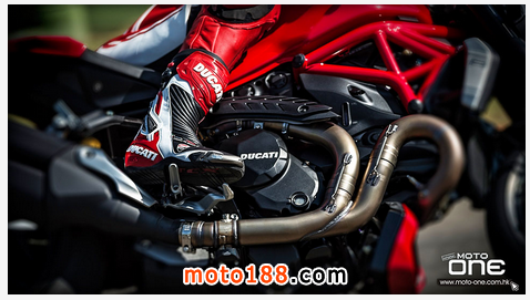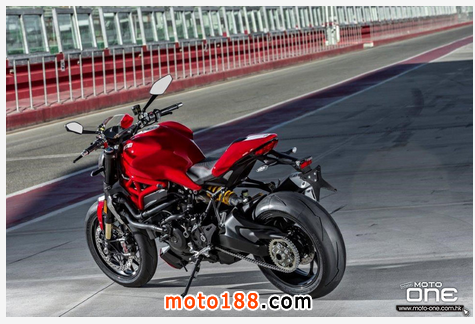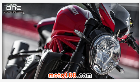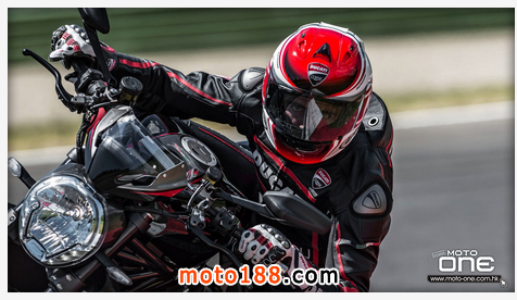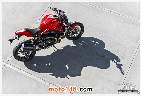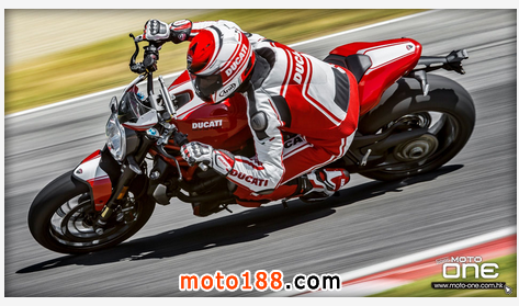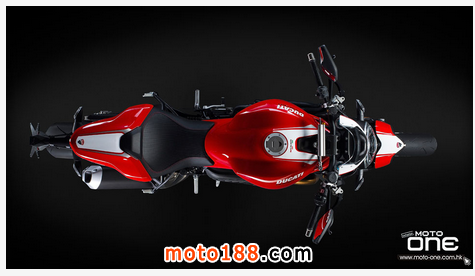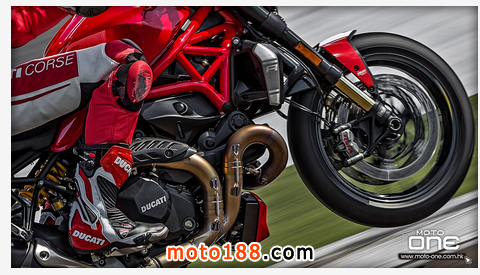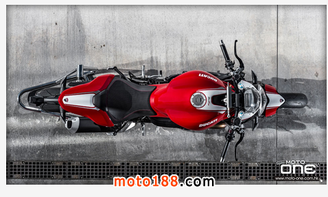 ●從DUCATI MONSTER R官方照片已看到賣弄新車的賽車性能,極限傾角達到50°,因此改用了SUPERBIKE規格的200闊輪胎,S版則是190,廠方聲言座姿也適合有較高身高的騎士乘座。