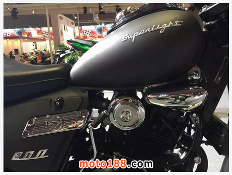 從外觀來看,Superlight是一款金屬風格的美式太子,整車以黑色磨砂烤漆件和銀色鍍鉻件為主,配色十分經典。