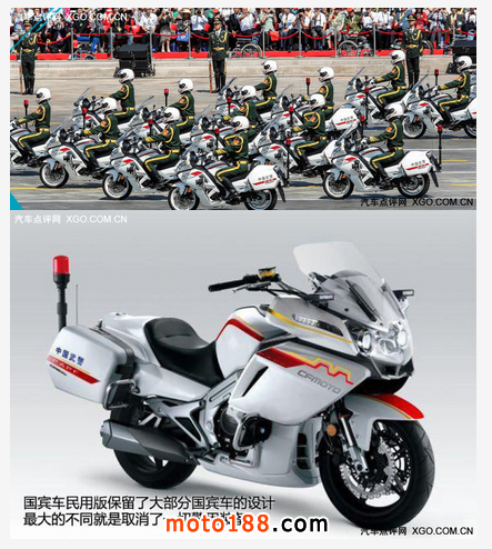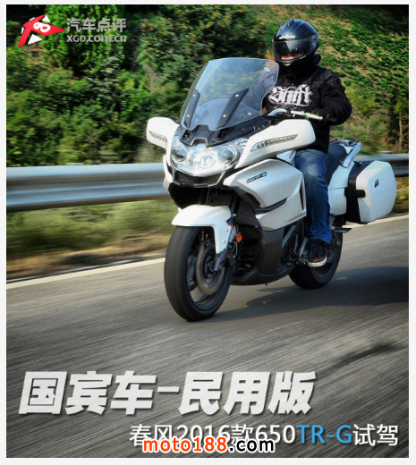 國賓摩托!不僅聽上去就非常“高大上”,而且還給人一種尋常百姓“只可遠觀不可褻玩焉”的感覺,想擁有一輛“國賓車”是摩托車愛好者的一個夢……而如今,夢想照進了現實。在9月3日中國紀念反法西斯戰爭勝利70周年大閱兵隊伍的前列,中國武警摩托車禮賓方隊45名隊員駕駛國產摩托車為抗戰老兵護衛,讓全國以及全世界都眼前一亮。而這些帥氣國賓車,其實很多人不知道其出身,讓我來告訴大家,“神秘”國賓車其實是真正的國貨,由浙江春風動力生產。而“93”閱兵后的9月12日,春風公司在“全國授權經銷商發布會”中正式發布了這款國賓車的民用版:2016款650TR-G,價格方面也給我們帶來了驚喜:59800元!
