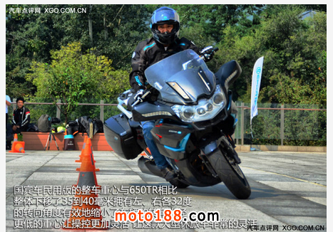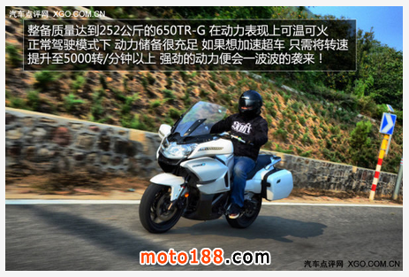 雖然這款車型車身長度超過2.2米,寬度也接近1米,但是得益于與650TR相比整體下移了35到40毫米的車身高度與黃金配比的車身重量:空車狀態下前、后輪各自承擔車身50%的重量,單人駕駛時前輪配重為45%,后輪配重為55%,使得650TR-G在操控性和穩定性方面具備了先天優勢。依靠馬牌輪胎出色的抓地力,無論是擁擠的城市行駛還是山路壓彎,這款大型的休旅車都給我感覺非常的靈活。