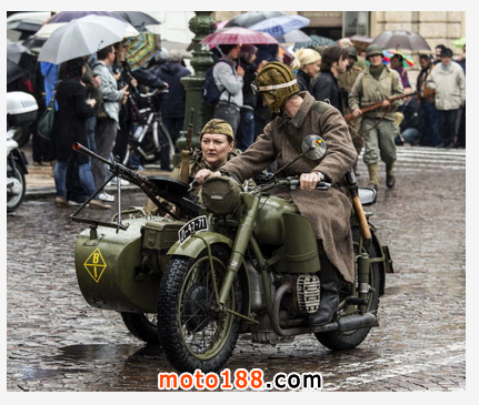 大國博弈從來都是實力的較量,只有強大的軍事實力才是最好的保障。亂世出英雄,早已為應對戰爭而生的烏拉爾摩托車現在有了英雄用武之地。1942年10月25日,第一臺M-72投入戰場,隨后烏拉爾摩托車源源不斷地輸往軍隊——二戰期間共有9799輛M-72裝備于前蘇聯的偵察部隊和機械化部隊。曠日持久的戰爭終于逐步轉向正義的一方,隨著捷報一個接一個傳來,終于在1945年5月8日,德軍宣布無條件投降。在這場長達4年的衛國戰爭,烏拉爾摩托車始終活躍在作戰前線,頻頻出入于槍林彈雨,幫助前蘇聯紅軍立下了赫赫戰功。