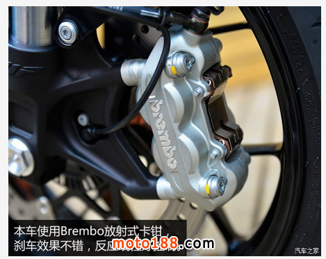 在懸架及剎車(chē)配置方面,690 Duke是這次海選中配置最高的車(chē)型。43mm的倒立式前叉(不可調(diào)),是減震器大廠WP的產(chǎn)品。前剎車(chē)雖然是直徑320mm單盤(pán)剎車(chē),但是使用了Brembo的對(duì)四剎車(chē)卡鉗,剎車(chē)盤(pán)是浮動(dòng)式設(shè)計(jì),比起200/390 Duke要來(lái)的更有誠(chéng)意,而且反應(yīng)也靈敏許多。很多人或許會(huì)質(zhì)疑排量已經(jīng)到達(dá)690ml,為什么不配置雙碟?這是因?yàn)檐?chē)重不是很重,所以單盤(pán)配置足以應(yīng)付這輛車(chē)的動(dòng)力。