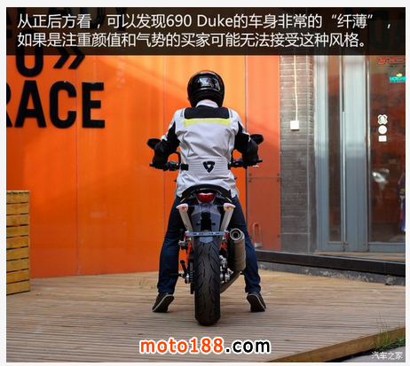 整體而言,如果只針對(duì)玩樂(lè)性而言,690 Duke的確能夠拿到很高的分?jǐn)?shù)。輕巧的的操控和強(qiáng)悍的扭矩輸出都讓它在彎道中有著極高的戰(zhàn)斗力,在配置方面,它的表現(xiàn)也非常好,有輕量化高剛性的鋼管車(chē)架,以及充滿(mǎn)KTM特色的鋁合金擺臂。但是你也得接受這臺(tái)單缸發(fā)動(dòng)機(jī)的震動(dòng)、比較單薄的發(fā)動(dòng)機(jī)聲浪,還有高速表現(xiàn)明顯不如搭載四缸發(fā)動(dòng)機(jī)的車(chē)款。另外,它的外觀看起來(lái)比較嬌小,沒(méi)有大排量摩托車(chē)的氣勢(shì),對(duì)于許多注重“顏值”的車(chē)迷而言,可能不是那么討喜。