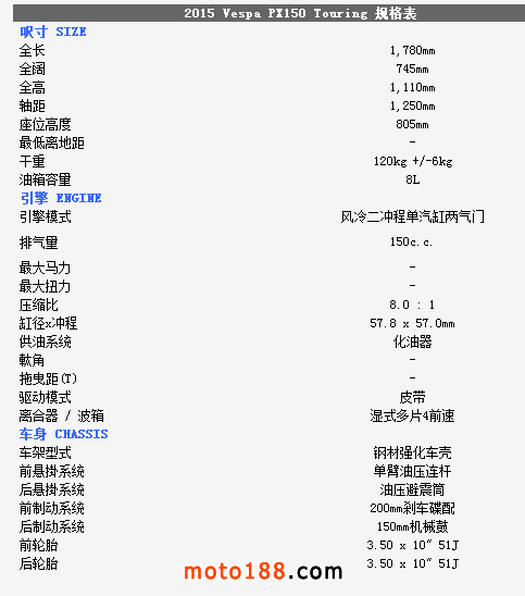 Vespa PX150 Touring、PRIMAVERA 150 Touring及GTS 300 Touring ABS均為標(biāo)準(zhǔn)版的加強(qiáng)裝備版本,分別增加了可最高負(fù)重4kg的前后載物架(GTS 300 Touring尾架為6kg)、復(fù)古的風(fēng)擋及全新備有壓紋設(shè)計(jì)的座墊。對(duì)于旅行型的綿羊來說,可增加8kg至10kg的載物量,絕對(duì)是可觀的數(shù)字,實(shí)用性 更佳,而風(fēng)擋也是旅行綿羊的好裝備。