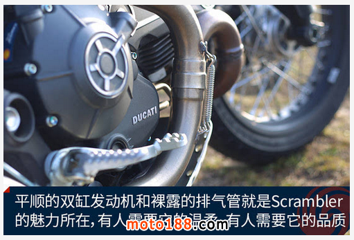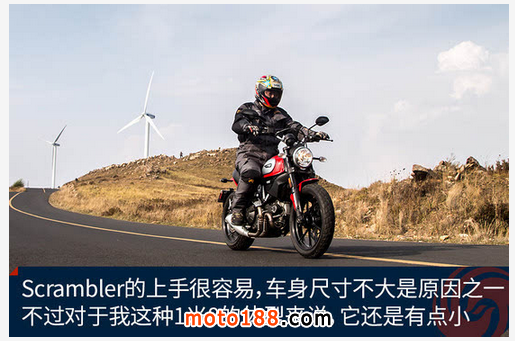 Scrambler并不一樣,盡管它是一輛杜卡迪,但似乎脾氣好了很多,就像北京金隅隊的馬布里一樣。廠家的人解釋說因為氣門疊加角調整到了11°,目的就是為了要抑制那種慘無人道的爆烈輸出,從而讓更多的人進入到杜卡迪的世界。