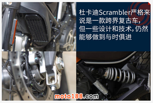 Scrambler一如既往了選擇了高品質的配件,比如頂級的帶有ABS的剎車系統(tǒng)。我必須要認真的說一句:摩托車比汽車更需要ABS,身邊很多車友摔車的重要原因就是——輪胎抱死!但我很納悶,Scrambler可以輕松的做出后輪剎車甩尾的特殊動作,也許它還保留了摩托車必不可少的樂趣成分。一杯白開水的形容會讓汽車企業(yè)感到內疚,對于摩托車來說更是無法容忍的!