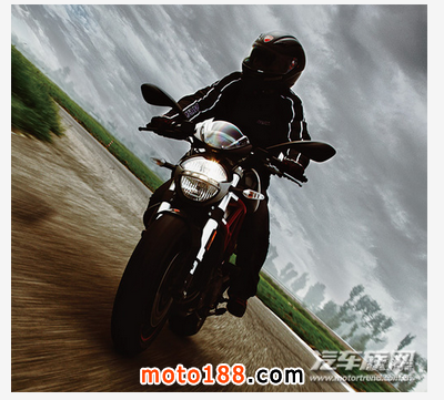 杜卡迪車系橫跨公路型NK街車、超級跑車、拉力車、滑胎車及巡航車。傳統上講,其憑借著個性鮮明的DESMO氣門結構,已經在公路摩托車上出盡風頭,Monster車系更可稱之為摩壇常青樹今天我們測試的這臺Monster 796是怪獸家族中的新秀,相比696的陰柔,它更加剛陽一些,后搖臂的單邊設計也表明了他特立獨行的一面。該車配備了一臺803CC的L型風冷雙缸發動機,采用電子燃油噴射系統,最大馬力87馬力,最大扭矩80牛米,濕式6速變速箱。但當你跨上怪獸,打著引擎的一剎那,一切都變了。隨著表頭紅線刷過,杜卡迪發出雄壯有力的聲響,刺激著你去試探第一把油門。沒錯,他仍然是一臺純粹的杜卡迪。