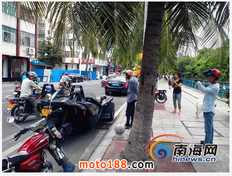 “這車太酷了,快來拍照!”、“這是什么車,外形真像‘飛機’,應該值很多錢?!。”10月8日下午17時20分許,在三亞市臨春河路與商品街六巷交叉處路邊停一輛奇異車輛,有人稱是“飛機”跑車,也有人稱“豪華”跑車,引發(fā)過往市民紛紛拍照。此車掛著“黑D6XXX6”黃牌。