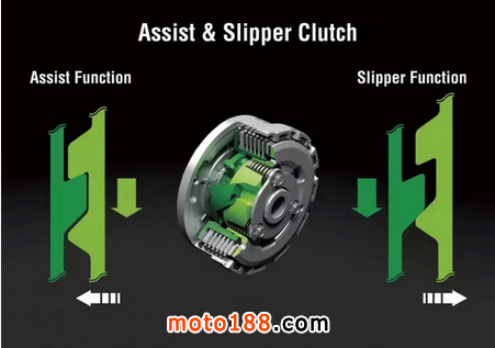 輔助滑動式離合器是基于賽車活動反饋而進行研發。該離合器采用了2種類型的凸輪(一種輔助式凸輪和一種滑動式凸輪),增加了2種在早先車型的標準離合器上無法實現的新功能。