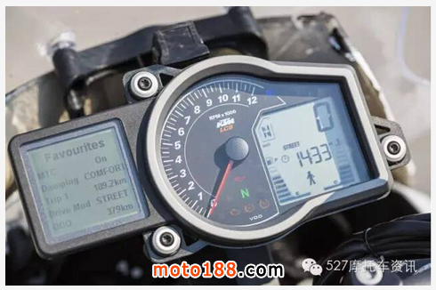 動力方面,1290 Super Duke GT搭載1301c.c.的V型雙缸發(fā)動機,最大馬力在180匹以上;配置方面,新車采用全新的汽缸蓋以及經(jīng)過改進的點火系統(tǒng),同時配備Sport、Street和Rain三種動力模式,新車還采用了WP半自動可調(diào)減震系統(tǒng)及MSC(摩托車穩(wěn)定控制系統(tǒng)),而定速巡航、加熱系統(tǒng)以及快速換擋系統(tǒng)也有可能作為新車標配。另外,1290 Super Duke GT對車座及副車架都進行了改進,并采用容量達24.6升的油箱,使長途旅行更為舒適、有保障。