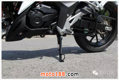 配備了17寸多幅式輪轂,漆面做工一般。前后輪胎都為正新,也是出于成本控制。前輪規(guī)格為90/80-17,后輪為120/80-17。