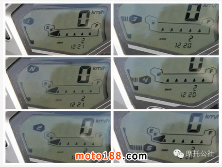 右側(cè)為轉(zhuǎn)速表加各種儀表燈顯示,左側(cè)液晶屏為檔顯、速度、油表、里程和時(shí)間。