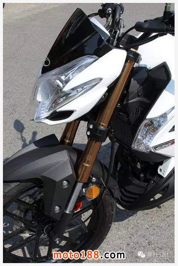 另一個(gè)比較明顯的改變是兩個(gè)粗壯的倒置前叉。看來(lái),現(xiàn)在倒叉已經(jīng)成為了國(guó)產(chǎn)150的潮流。