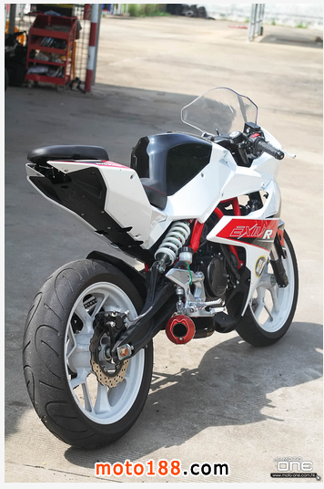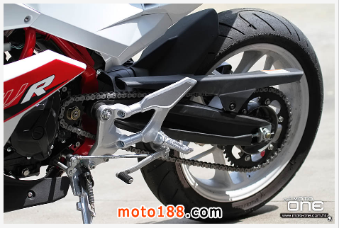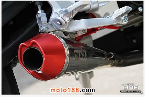 ●更換排氣管及消聲器是釋放馬力的方法之一,HYOSUNG GD250R採用中置式的排氣管擺放設計,使車輛有更佳重心。