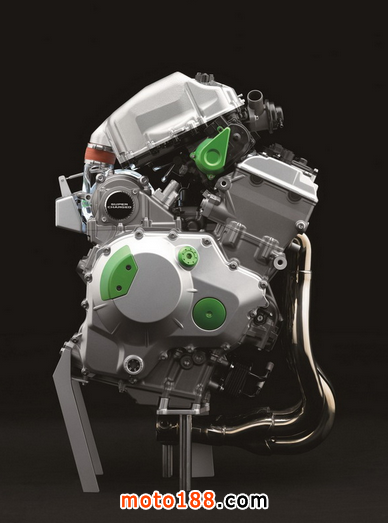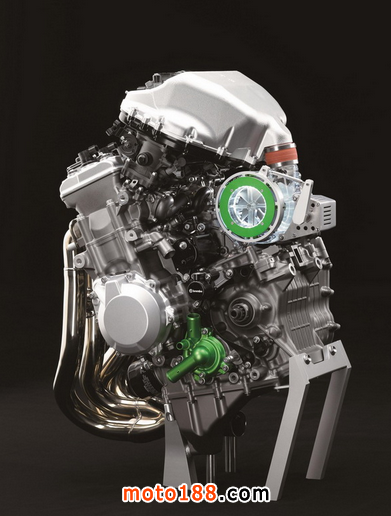 下圖:2016' Ninja “ 忍者 ” H2/H2R 發(fā)動機(jī)及其新的電子控制閥門渦輪增壓系統(tǒng)的特寫。