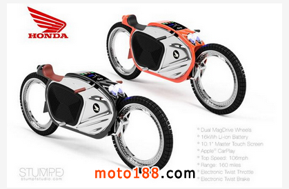 看到名稱后綴的英文字母“E”,結合這款車夸張的造型,不難想像著是一部先進的電力驅動摩托車。老周認為CB 160 E最大的特色在于其兩個完全鏤空的車輪,這種近乎于科幻的設計擁有難以抗拒的魅力。