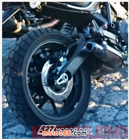 從諜照來看,Scrambler 400的完成度已經很高,車架依舊沿用Scrambler的,整體外觀和Scrambler也沒有大的出入,但是前避震換成了正立前叉、后搖臂也變得單薄了很多。