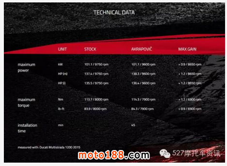 新款(r)evolutionary鈦合金尾段使Multistrada 1200的動力輸出更加順暢,并將獲得1.2匹(8650轉)的馬力提升和1.2牛米(6900轉)的扭矩提升;排氣管采用頂級的鈦合金材質,并配備手工打造的碳纖維隔熱板和尾蓋,鈦合金材質的采用極大減輕了排氣管的重量;新款排氣管還能使Multistrada 1200的聲浪更加低沉渾厚,動人心魄。另外,Akrapovi?還為改裝愛好者打造了一款選配的鈦合金排氣集管,它可幫助Multistrada 1200進一步提升馬力和油門響應時間,并使其擁有賽車般“咆哮”的聲浪。