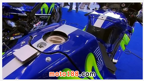 由於舊款戰(zhàn)車是針對(duì)BRIDGESTONE及16.5寸輪框度身訂造,即使17寸新輪框只比舊輪框增加0.5寸,但新胎采用全新的胎面角度,完全改變戰(zhàn)車的重量分布、咬地性能及轉(zhuǎn)向反應(yīng),再者載滿22升汽油的新油缸比舊款20升重,這將會(huì)增加前胎的負(fù)荷,萬一避震及車身傾角等設(shè)定出現(xiàn)問題,也會(huì)加速輪胎損耗速度。為此,YAMAHA嘗試將U型油缸以相反方向放置在車尾上,嘗試以不同的設(shè)計(jì)尋找最合適的設(shè)定。至於新油缸會(huì)否在將來的賽事亮相,有待車手測(cè)試後的評(píng)語。