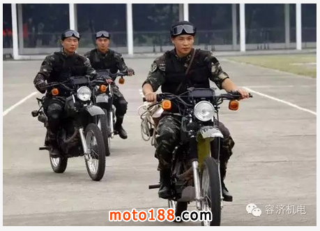 摩托車被譽為交通界的老化石,它作為交通工具進入人們生活領域已有100多年歷史,作為作戰工具使用也有半個多世紀了,說到軍用摩托車大家可能會想到嘉陵,首先聲明武警部隊的嘉陵600不屬于軍用之列,因為它在公路上還行若是泥濘的環境就要趴窩了,解放軍特種部隊裝備的摩托注意看油箱上特種部隊的標志。