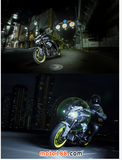 采用大量新一代YZF-R1技術,著重強調中、低速轉速段動力輸出,加寬油箱整流罩更具力量感和視覺“威脅性”,仿生學的頭部設計猶如螳螂一般,尾部則是極簡設計,MT10由內至外野性十足。