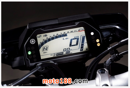 全方面信息顯示的儀表板比YZF-R1更直觀。顯示信息包括車速、里程、轉速、燃油、短里程、檔位、牽引力模式、動力控制模式等。