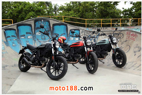 去年,DUCATI進一步開拓年青騎士市場,以1962年面世的SCRAMBLER為藍本,製造一系列不同風格且極具活力的21世紀版SCRAMBLER,包括ICON、FULL THROTTLE、URBAN ENDURO及CLASSIC。整個系列採用風冷四沖程L2 Desmodromic 4汽閥引擎,排氣量803cc,雖然車輛只有75hp馬力,但引擎卻有充沛的扭力。
