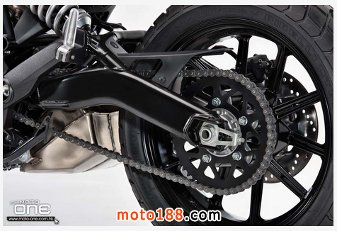 ●鋼管車架、鷗翼型尾擔、短炮型消聲器、闊轪把及L2引擎,與大排803cc版相同的佈局。