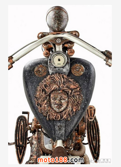 自土耳其的富豪Tarhan Telli設(shè)計(jì)了一部黃金摩托車,接觸過(guò)圖中這臺(tái)摩托車的人都承認(rèn)它有兩種魔力,一方面是難以置信的售價(jià),僅這臺(tái)摩托的黃金車架的造價(jià)就高達(dá)100萬(wàn)美元;另一方面是這臺(tái)摩托的蒸汽朋克造型。