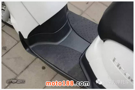 與那些“小踏板”不同,這三個大家伙都為后座乘客準備了“體面”的腳踏,尤其以圣甲蟲寬大的固定式踏板顯得最為實在,而城市之星和賽艇300的踏板都是可以像傳統摩托車那樣折疊收起。