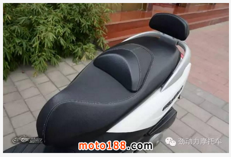 還是賽艇300的車座最讓人滿意,三款車中車身最大,車座也是當仁不讓,其寬大程度和舒適性甚至可以與許多豪華旅行車媲美,柔軟舒適得就像是一個大沙發,坐過它之后你就再也不想把屁股挪到另外兩款車上了,就連后座乘客也是同樣的想法。更讓人欣慰的是,車體最大的它,坐高卻是三車中最低的,只有780毫米,“矮騎手”們現在也可以輕松騎上“大踏板”了!