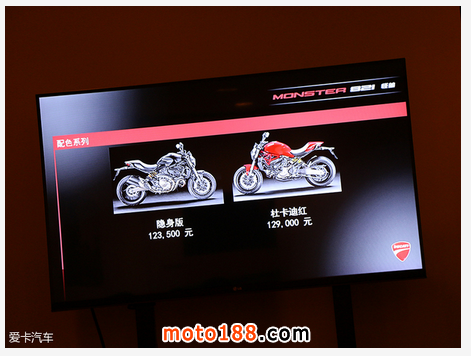 繼一年前杜卡迪在米蘭國際摩托車展上發(fā)布了全新一代Monster怪獸1200之后,在2015年11月20日的廣州車展上,杜卡迪在中國市場發(fā)布了Monster怪獸821,一款Monster怪獸車系中的全新車型,該車“隱身版”售價為12.35萬元,“杜卡迪紅”售價為12.9萬元。