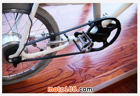 而讓人覺得有意思的地方是,它不是一輛電動自行車,而是一輛電動助力車。這個意思就是它會感應騎行者的發力大小,當你騎行時候腳下發力越大,電動助力也越明顯。就是說這輛車有著相當不錯的推背感!