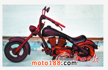 這個車展沒有美女車模,只有車的制造者鄺伯在現(xiàn)場為街坊們作詳盡介紹。“這輛車用紫檀木制作,最為昂貴,而這部摩托車不要看用料少,其實花費的心思卻最多,因為有很多精細的部件。你看這個木制的鑰匙還能拔出來……”