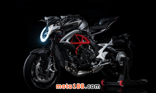 第一臺印有新MV Agusta logo的電單車,便是用了MV全公司25%資源預算,內(nèi)外全新的2016 Brutale 800。預計2016年一月便開始上架,新車用料更精良,更具肌肉感,賣相也更兇惡。全LED鵝蛋形頭燈組,燈架和座位支架都是由輕量化鋁合金制作。F3機器的招牌菜三出陣列式排氣喉,現(xiàn)在尺寸更大,容量增加了三公升,視覺上更具霸氣。
