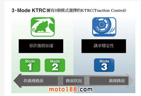 ●KTRC即是減低輪胎打滑造成跌車的3段式選擇的Traction Control(循跡系統),車輛還有ABS輔助剎車系統。