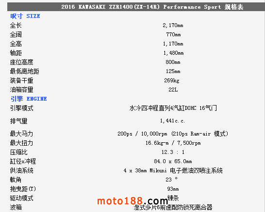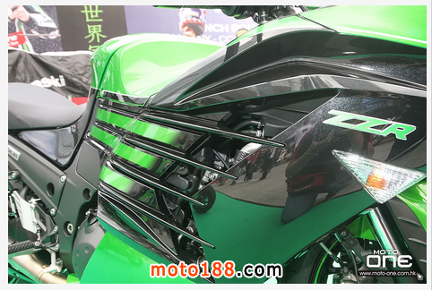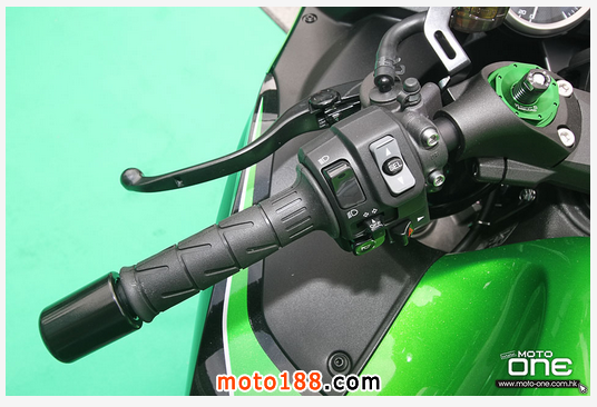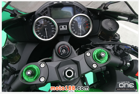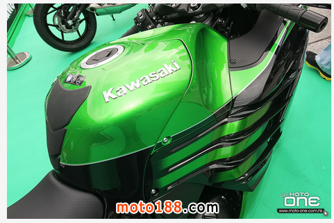 除此之外,前叉頂也由金色改用川崎綠色,並且利用雷射刻上PRELOAD(預載)英文字,圓型轉數表及速度表環也由黑色變為銀色,座墊改用了防滑物料製造,而2016ZZR1400(ZX-14R) Performance Sport特別版亦換上新的配色與拉花。