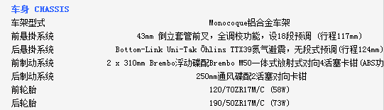 ●特別版改用了Ohlins TTX39全調校尾避震。