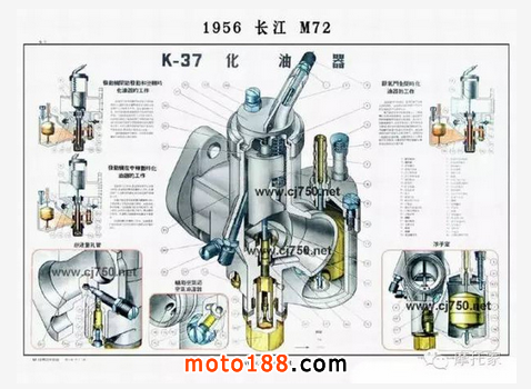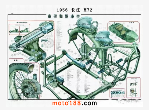 在洪都機械廠仿制的時候,由于參照實物是已經(jīng)去掉加熱系統(tǒng)的烏拉爾M72,所以根本無人知道原始的加熱設(shè)計。還有一項仿制中消逝的設(shè)計是風(fēng)門和動力分配擋,R71可以把30%的動力通過共軸直接輸出到挎斗上,并以手動拉桿的方式調(diào)節(jié),可M72則把風(fēng)門和動力分配擋挪到了腳的位置,并且不能將30%動力輸出到挎斗上。從寶馬R71到烏拉爾M72,再到洪都仿制版,也并不只是簡化,蘇聯(lián)人仿制M72很大程度上是為了大量裝備部隊,而中國的仿制版除了軍用,還承載著觀禮等多種設(shè)計任務(wù)。寶馬R71的挎斗沒有任何減震系統(tǒng),顛簸的路面乘坐起來很累,洪都仿制版拋棄了烏拉爾M72的挎斗結(jié)構(gòu),創(chuàng)造了一套中國化的挎斗避震支架。