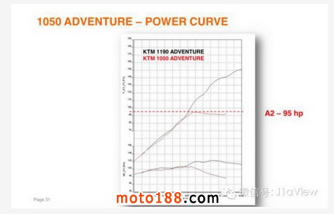 不僅如此,在把全新的1050 ADV送上德國實驗室里的馬力試驗機上以后,我們驚喜地發現,KTM1050ADV甚至在6000轉前跑出了和1190ADV幾乎是重合的功率曲線!區別在6000轉以后才變得明顯,因為1050ADV的最高功率始終被電子系統控制在了95PS以下。當德國實驗室解開了電子限制以后,實際測得1050ADV的V2雙缸發動機最高達到了115PS!