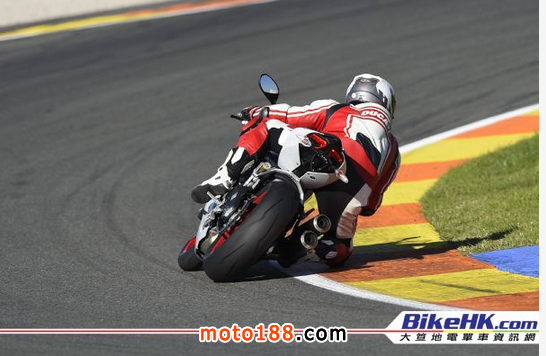 先說說引擎,959比較起899,在中段扭力方面優勝很多,尾段爆炸力也有改善,感覺有點像我的舊1199那種感覺。Valencia是一個非常多彎的場地,扭力好是對車手很大的幫助。而大會為了我們玩得能盡興,把輪胎換上了Diablo Supercorsa SC2,所以抓?力是完全沒問題的。