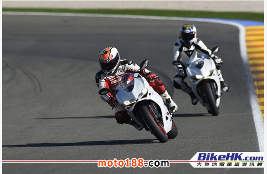 Valencia這賽車場是很技術性的,只有兩條直路,其中一條也是有彎的。其中有幾個彎中彎,又有些高速彎在轉完後要立刻剎車再轉,是非常忙碌的。959的馬力和操控性剛好適中,正如Ducati標榜的perfect balance,對我初學這場地有很大幫助,更能充分享受在這MotoGP場地飛馳的樂趣!